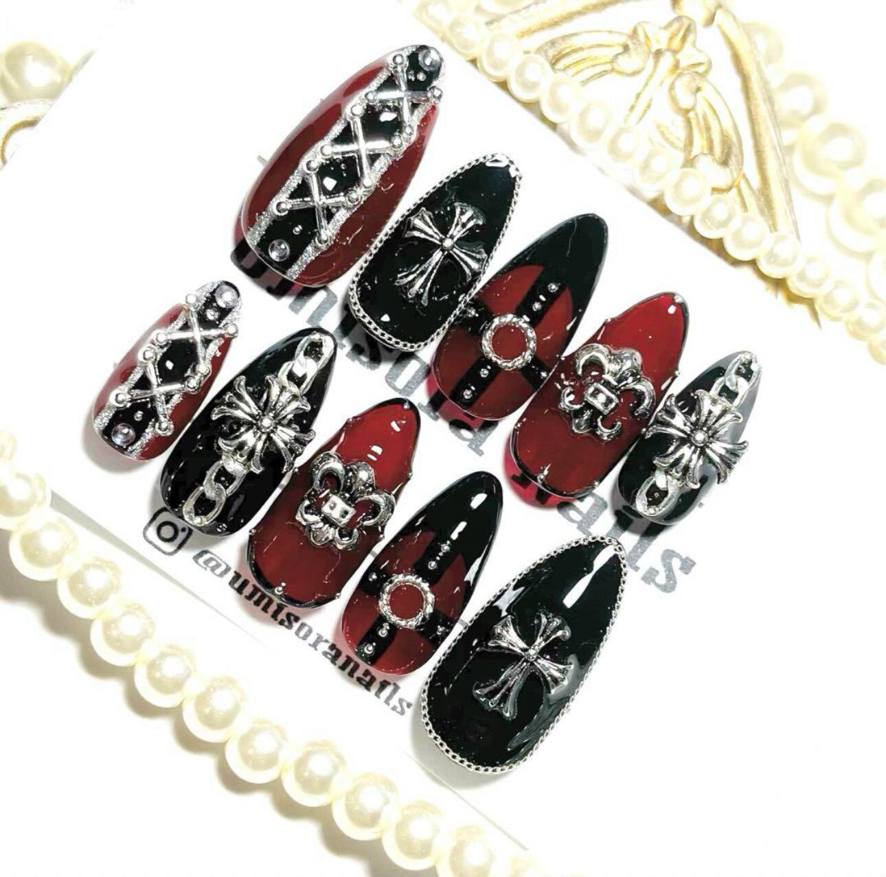 ブラック ボルドー ベルト 地雷系 ジェルネイルチップ